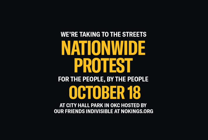 On 10/18 we will join the OKC metro community to raise our voices with millions of Americans across the country to say: we refuse to be intimidated by attacks on our rights and communities. Join us at City Hall Park from 10- 12:30. https://www.nokings.org #NoKingsOKC