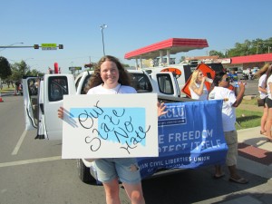 The ACLU is proud to announce we had huge turnout for this year's Pride Parade. We had a total of 42 enthusiastic volunteers march with us this year. Thanks to all the wonderful participants who helped make this year's Pride a success. Check out some photos of the event below. Don't hide your pride!